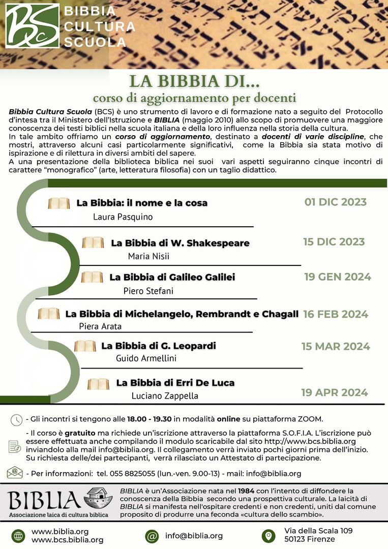 Scheda di iscrizione al corso "La bibbia di.." organizzato dall'associazione Biblia